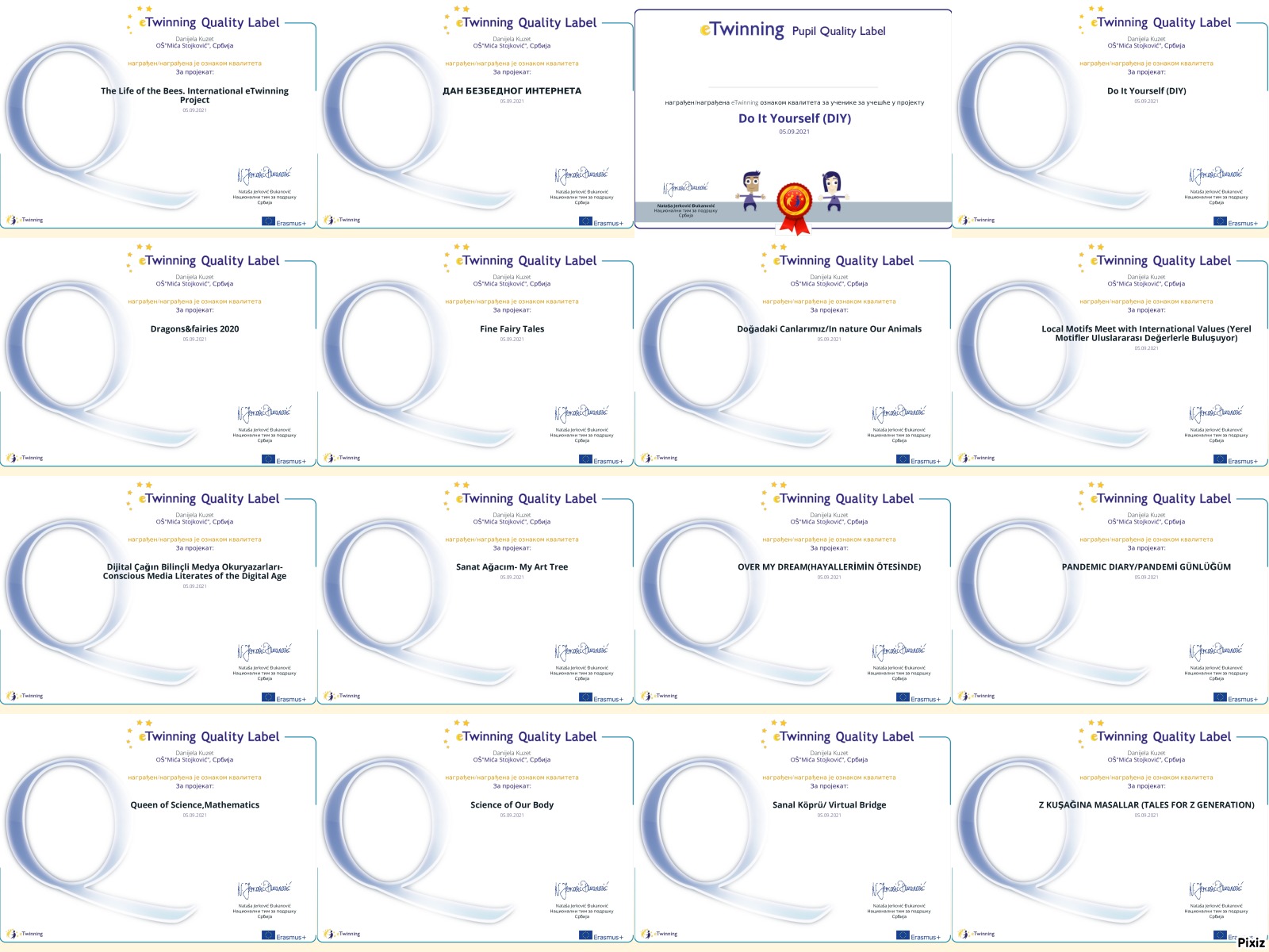 До сада највећи успех нашег eTwinning тима- освојили смо 15 националних ознака квалитета за пројекте ове године. Наши пројекти ће учествовати и у трци за Европске ознаке квалитета и надамо се успеху!