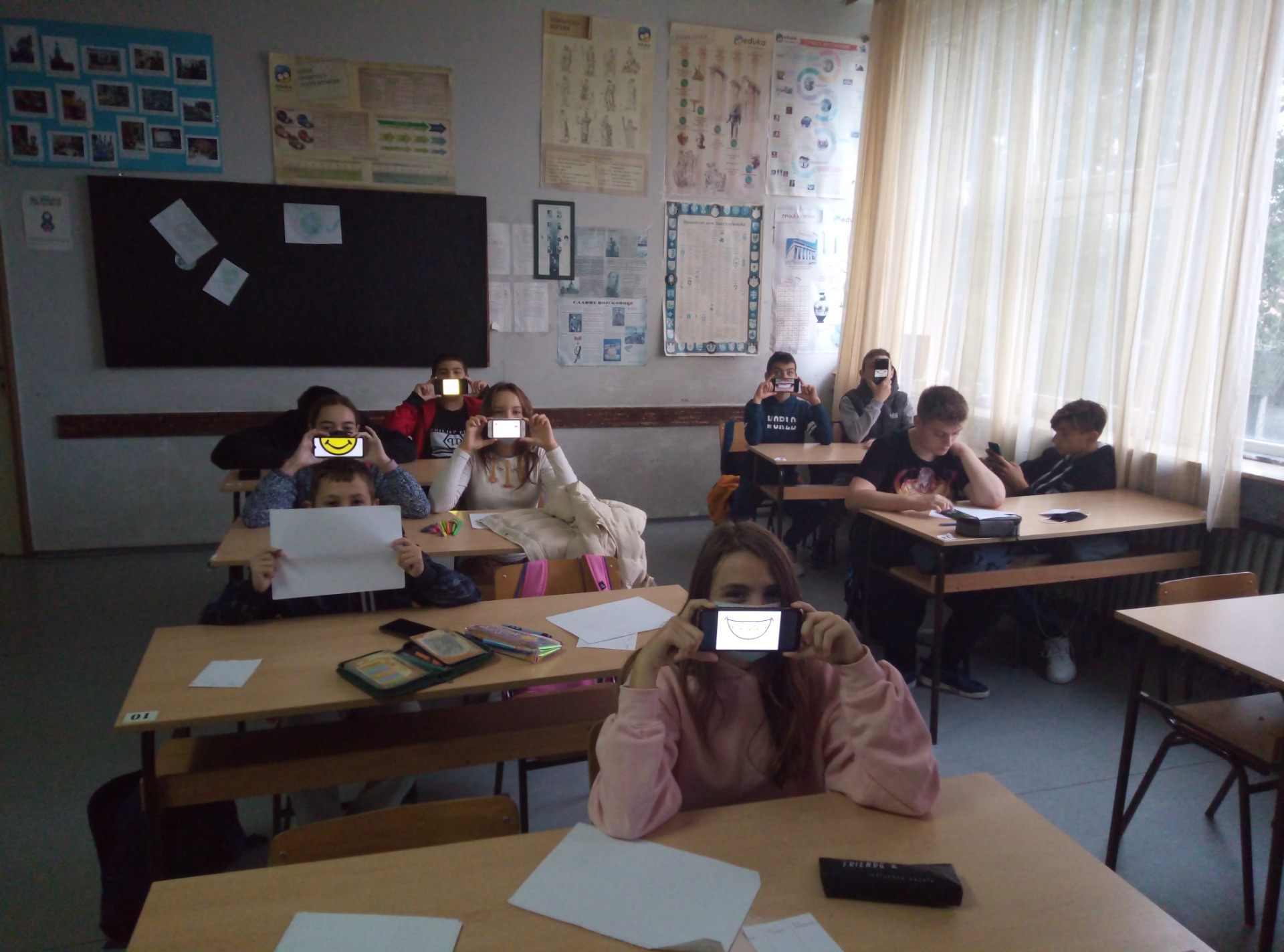 Дан осмеха су чланови историјске секције обележили радно, правећи постере и логое за пројекте и користећи веб алате. На часу смо разговарали и о значају медијске писмености и порекла информација што је све део великог европског пројекта под називом "SMILE". Овај дигитални осмех треба да оснажи ученике и наставнике на пољу дигиталних компетенција и умањи проток погрешних и злонамерних информација на интернету. Овај час је и наш допринос догађају на интернету којим се обележава Дан осмеха , а који је реализован преко eTwinning-a.