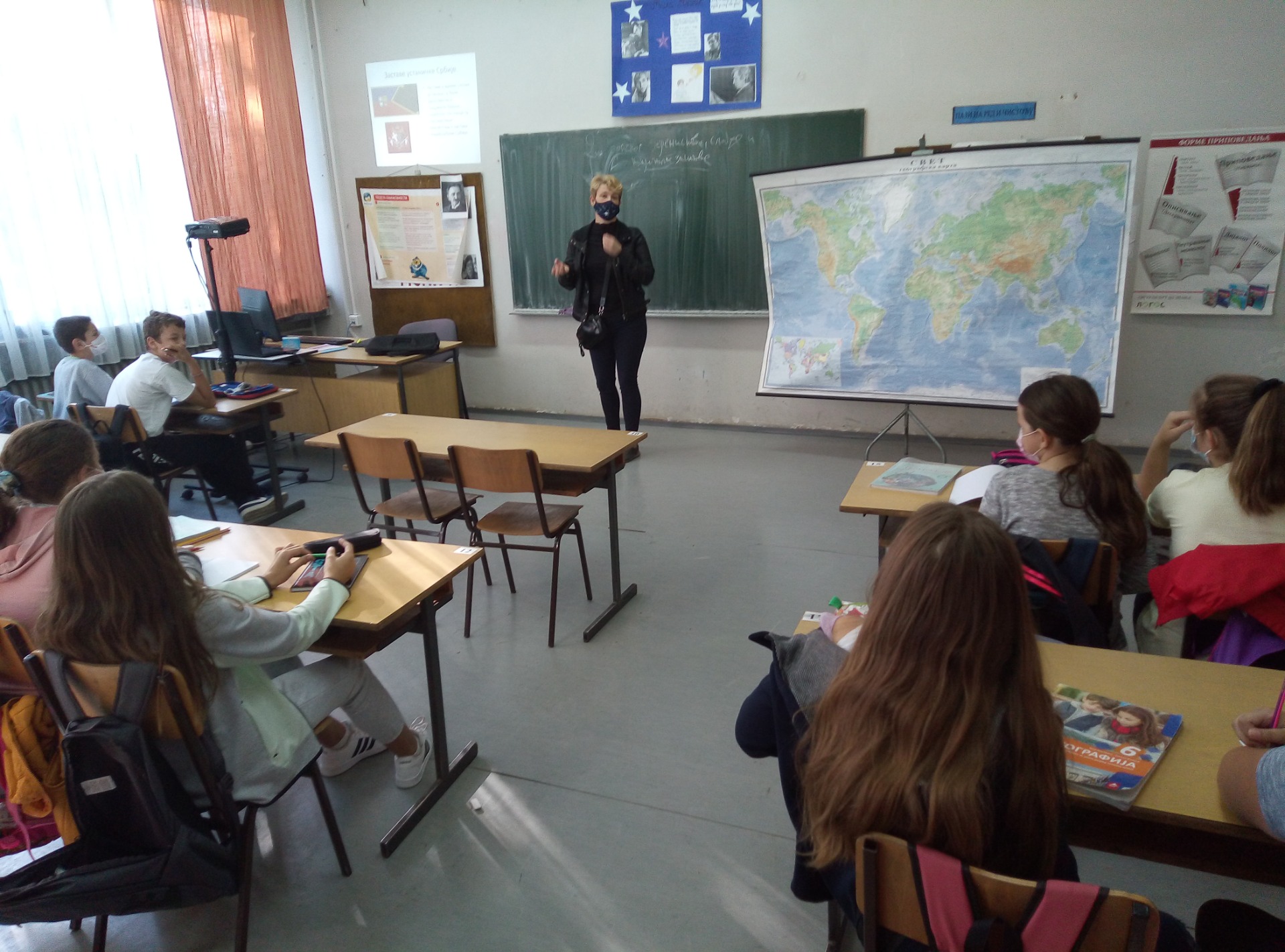 Наставник географије и наставница историје су одржали тематски час посвећен заштити шума, њиховој употреби у индустрији и утицају дрвне индустрије на туризам у склопу међународног eTwinning пројекта "I love nature , I protect the forests"-"Волим природу, штитим шуме". Најпре су ученици погледали филм о коришћењу дрвета за производњу папира, а потом је почела дискусија о позитивним и негативним аспектима употребе дрвета у индустрији за производњу папира, огрева, као и еколошким последицама крчења шума и последицама сече по екосистеме и туризам. Наставница историје је представила различите материјале за писање и како су се географски фактори одразили на прелазак са папируса на пергамент, а касније и на папир. Током предавања су нам се придружили учесници пројекта из Бодрума са својом наставницом Езром. Час је био динамичан, забаван и поучан за све учеснике.