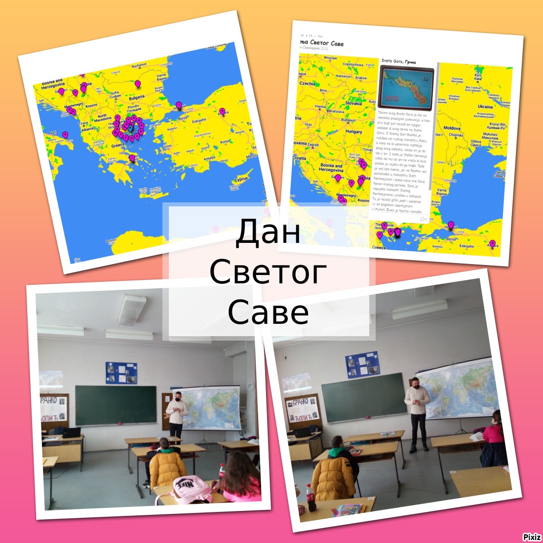 Поводом Дана Светог Саве наставници географије и историје су одржали тематски час посвећен путовањима Светог Саве, а ученици су добили задатке да на падлету обележе места које је Свети Сава обишао за живота. Слику са кратким текстом су постављали на падлет карту и тако исцртали трајакторију Савиних путовања. О путовањима су реферате представили и на часу уз коментаре и подстицајна питања наставника географије и наставнице историје. Док је наставник додатно појаснио географске аспекте ових места, наставница је отркила историјске разлоге путовања и њихов значај за српску средњовековну државу.