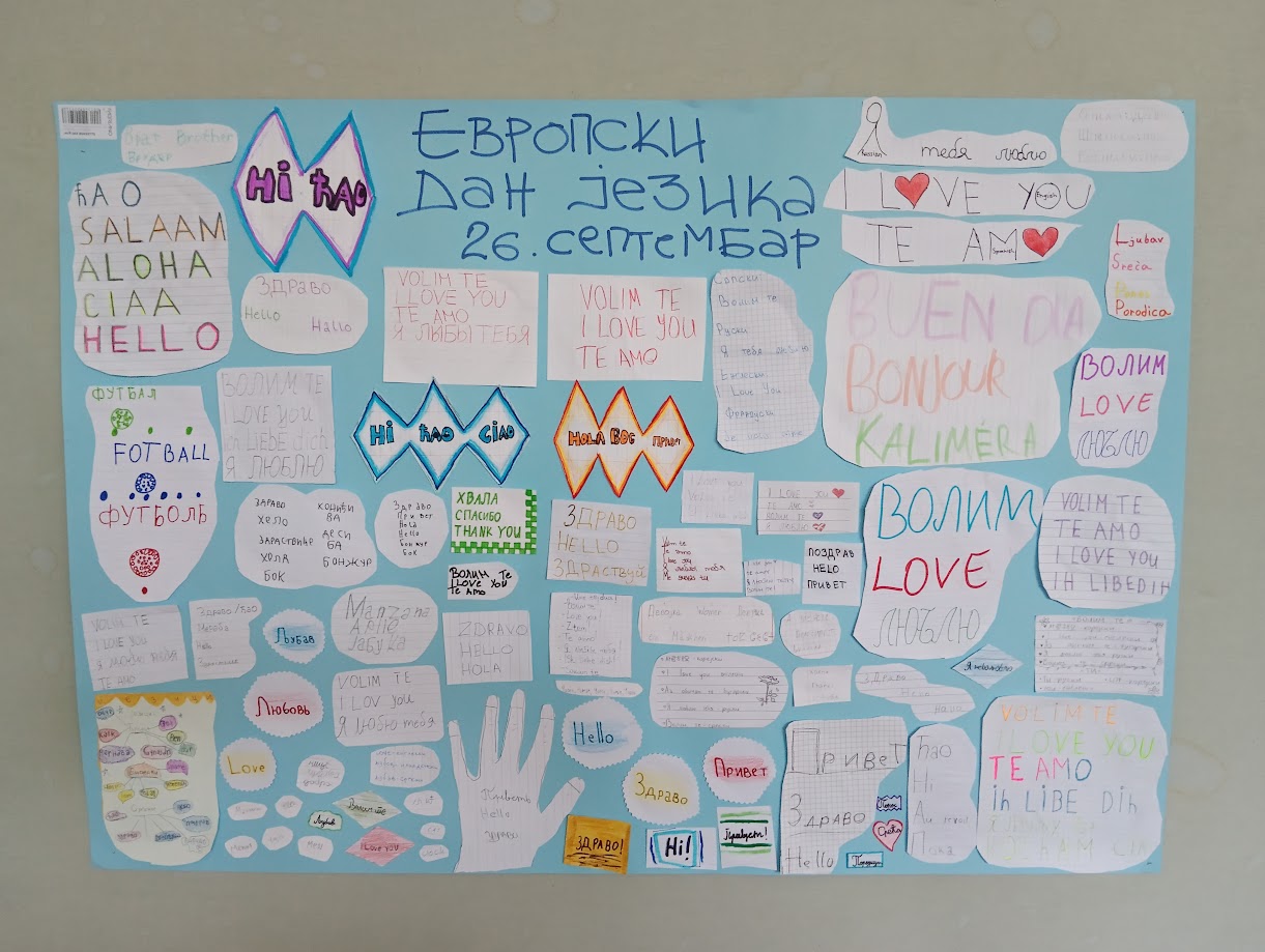 Поводом Европског дана језика у склопу тематског дана на часу историје 26. септембра ученици су имали задатак да покажу своје познавање различитих језика и једну реч по избору представе на више различитих језика. Ученици су показали добру вољу, креативност, сналажљивост, знање језика, али и поштовање правих вредности, јер су речи које су одабрали управо то и означавале- љубав, поздраве, породицу, честитке, спортове, дружење. Од њихових речи и радова направљен је и тематски плакат.