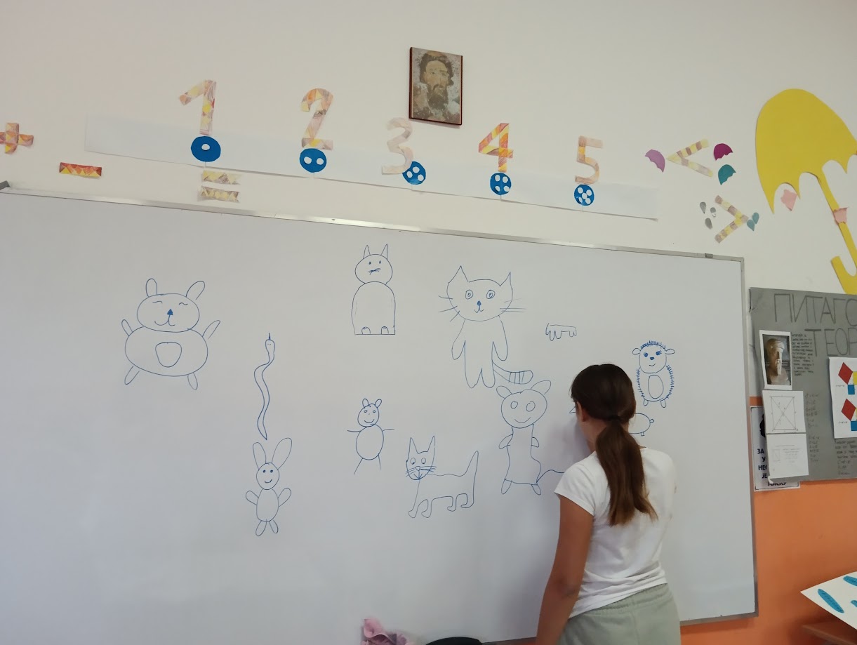 Дан животиња Поводом Дана животиња, 4.10. одржан је тематски дан на ком су учествовали наставници хемије,енглеског, историје и биологије. Тема су биле изумрле животиње, дивље и домаће животиње, кућни љубимци и различите појаве везане за животиње. На часу биологије, деца су код наставнице Станке Ивановић дочарала разноврсност животињског света кроз бројност врста и њихових станишта. На часу хемије код наставнице Маријане Ћосовић ученици су посматрали структуре отрова пчела, а потом идентификовали атоме хемијских елемената који улазе у састав апитоксина и хемоцијанина који везује јон бакра због чега је крв мекушаца и зглавкара плаве боје. На часу енглеског језика су код наставнице Иване Недић деца млађих разреда наводила називе животиња на енглеском језику- такође су деца набрајала своје кућне љубимце, наводила им име и врсту. Наставница је указала на значај одговорног понашања према животињама које су деца и представила својим ликовним радовима. На часу историје код наставнице Данијеле Кужет деца су се кроз презентацију подсетила неких изумрлих животиња, али је скренута пажња и на животиње које су сачуване од изумирања интервенцијом човека попут Пржевалског коња или Белоглавог супа. Деца су цртежима представила своје омиљене животиње и сложила се да човек има велику одговорност према природи и свим бићима у њој